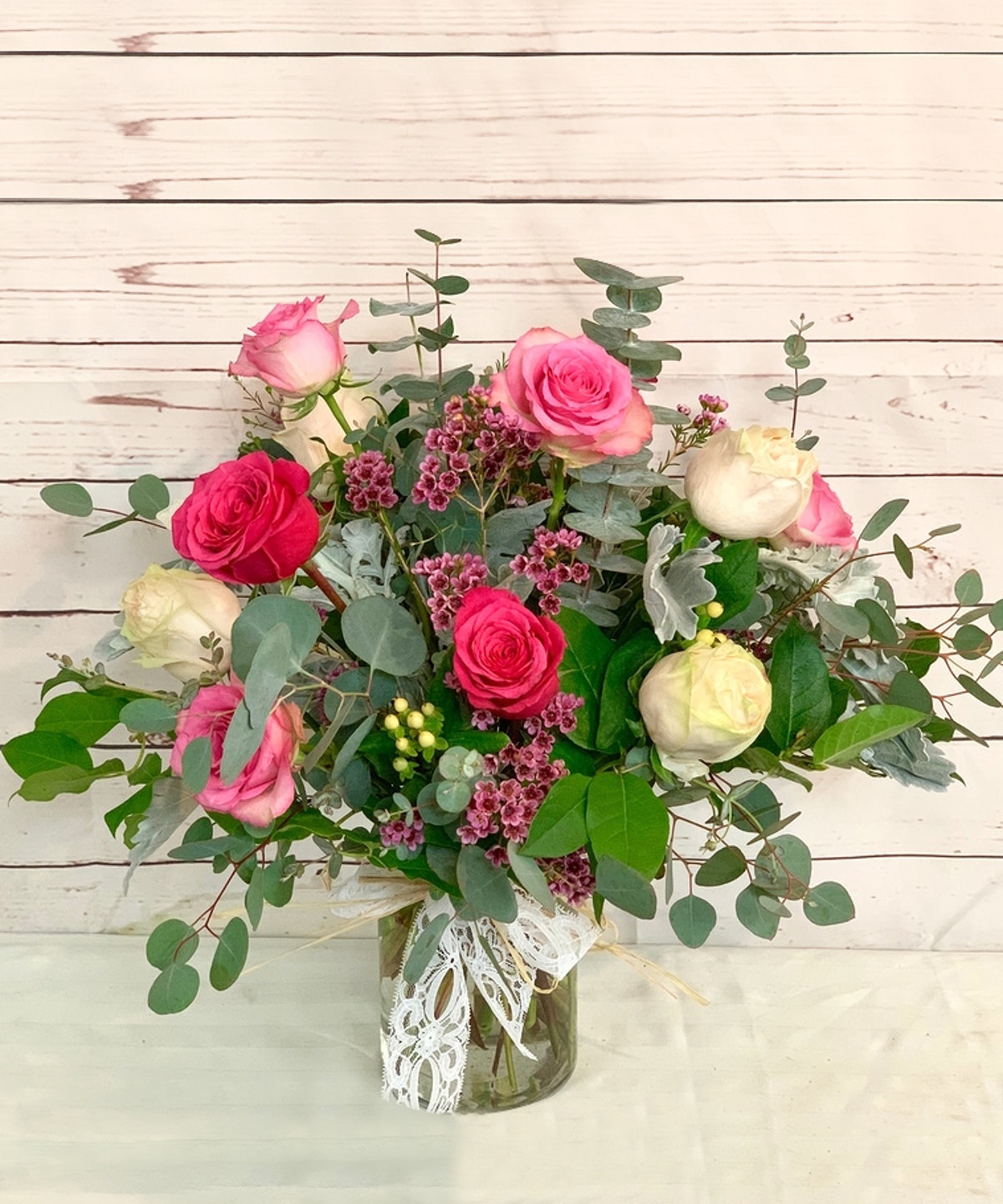 Romantic shades of roses, coupled with eucalyptus greenery and wildflower accents, perfect for the free spirit in your life!