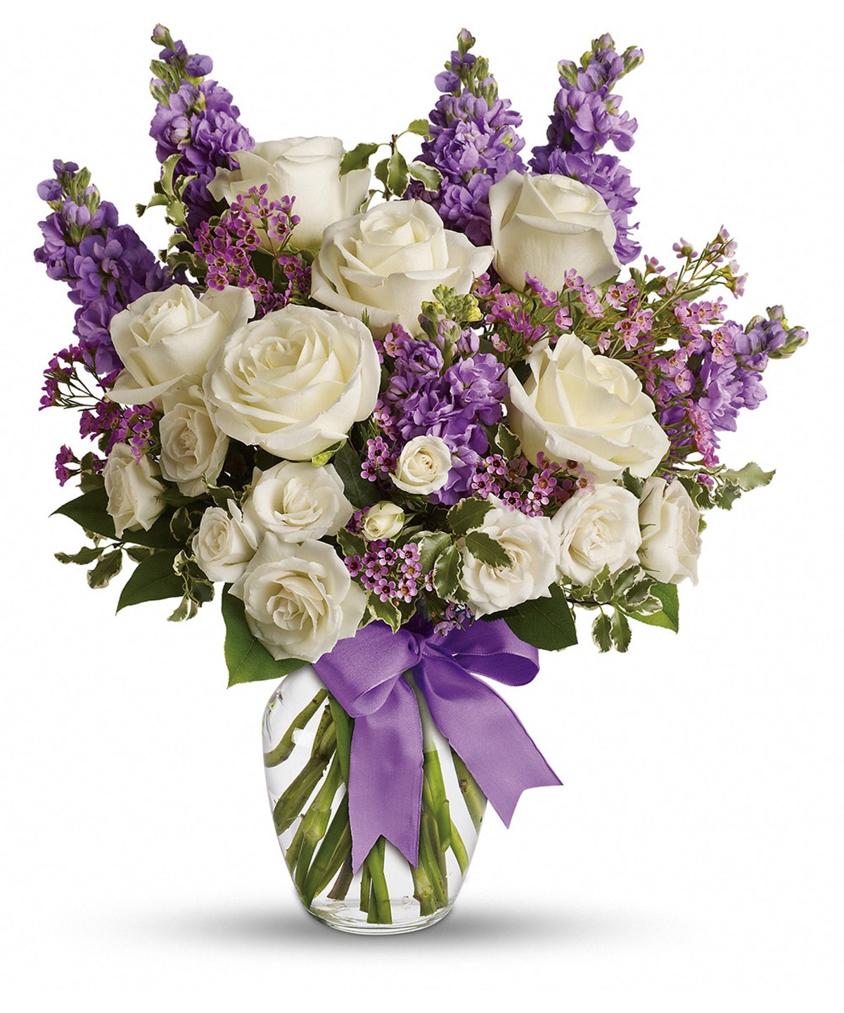 Reminiscent of a beautiful impressionist portrait, the deep purples, fresh blues and crisp whites of this stunning bouquet make an unforgettable artistic statement. What a lovely surprise on any occasion!
